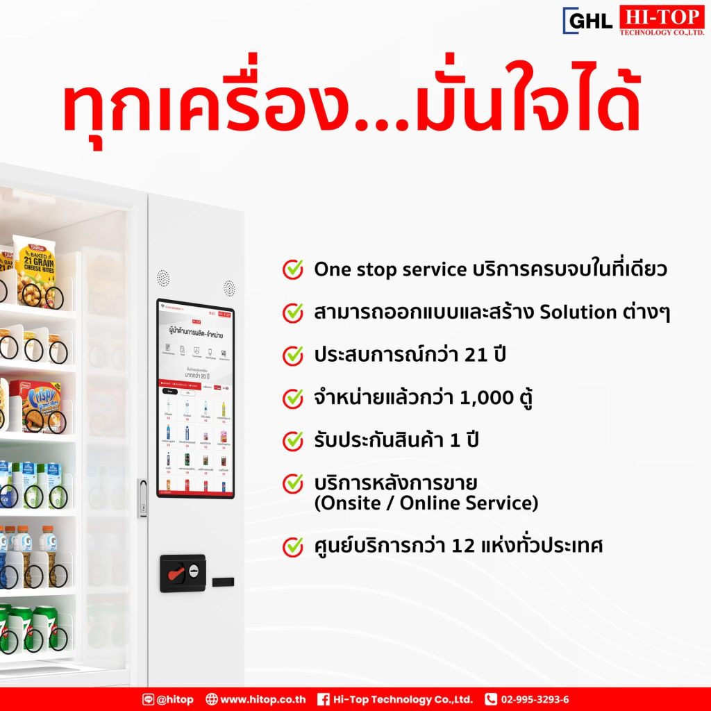 HI-TOP พร้อมซัปพอร์ตทุกไอเดีย Vending Machine, Kiosk, Touch Screen, Digital Signage, Access Control หรือโซลูชั่นอื่นๆ ครบจบในที่เดียว ตั้งแต่ออกแบบ-ผลิต-ติดตั้ง-การรับประกัน-บริการหลังการขาย ด้วยประสบการณ์มากกว่า 21 ปี พร้อมศูนย์บริการมากกว่า 12 แห่งทั่วประเทศ
